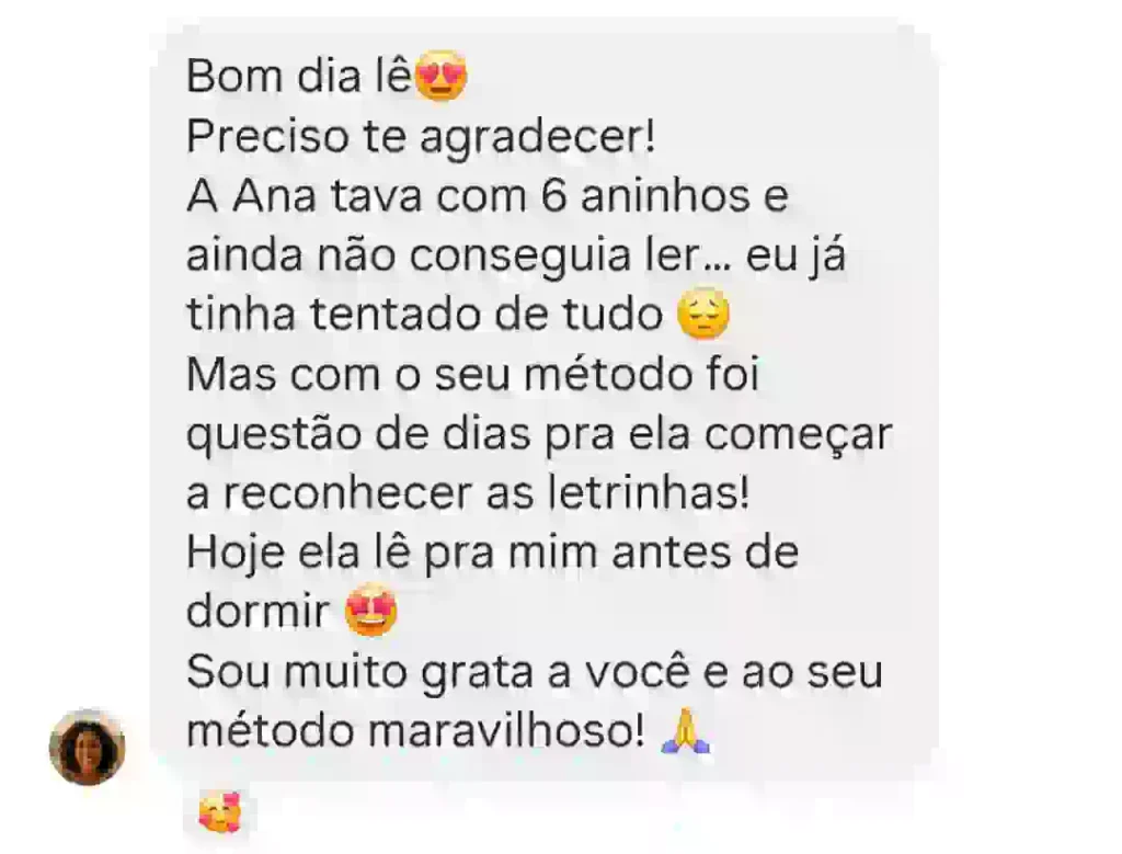 Sim! O método é baseado em técnicas fonéticas utilizadas por educadores e adaptadas para o ambiente familiar. São centenas de mães que já comprovaram os resultados, mesmo sem experiência em ensino.
